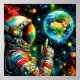 Ein einsamer Astronaut schwimmt im Weltraum vor dem lebendigen Hintergrund der Erde und zahlreicher Himmelskörper. Lebhafte Farben und komplexe Details erfassen die Weite und das Geheimnis des Universums.