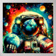 Ein einsamer Astronaut schwimmt im Weltraum vor dem lebendigen Hintergrund der Erde und zahlreicher Himmelskörper. Lebhafte Farben und komplexe Details erfassen die Weite und das Geheimnis des Universums.