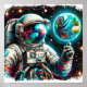 Ein einsamer Astronaut schwimmt im Weltraum vor dem lebendigen Hintergrund der Erde und zahlreicher Himmelskörper. Lebhafte Farben und komplexe Details erfassen die Weite und das Geheimnis des Universums.