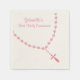 Fügen Sie diese persönliche Touch Ihrem Party der Ersten Heiligen Kommunion Ihrer Tochter hinzu. Diese Servietten können auch für Taufen oder Weihnachten verwendet werden. Personalisierte Servietten hinzufügen. Es gibt rosa Rosenkranzen, die von den Ecken der Serviette gezogen werden, mit einem großen rosa Kreuz, das von ihrer Mitte hängt. Personalisieren mit Namen. Karo die vielen anderen Designs in unserem Shop und passende Einladungen.©JW Illustrations