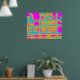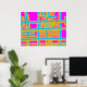 "Lines of Communication" ist ein farbenfrohes abstraktes Design in magenta, blau und in orangefarbenen und orangefarbenen Tönen.