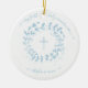 Kommunion Blauer Kranz und Kreuz Keramik Ornament