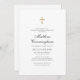 Besteht aus kursiver Schrift- und Serifentypografie; Alles vor einem Hintergrund mit weißem Hintergrund. Die Typografie wird durch ein einfaches Imitat-Kreuz subtil dekoriert. Das ist eine klassische, einfache und saubere Einladung. Dieses wurde von Select Party Supplies entworfen, exklusiv für Zazzle. Abrufbar unter: http://www.zazzle.com/selectpartysupplies