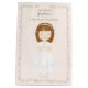 Kommunion Girl Praying Dieses schöne und süße First Heilige Kommunion-Design eines brünetten kleinen Mädchens, das friedlich an ihrem besonderen Tag betet, liegt auf einem blassen pfirsichfarbenen und schlauen Hintergrund. Akzentriert mit einem Wildblume Blatt Rahmen. Mit diesem wunderschönen Design die großen Erinnerungen der ersten heiligen Gemeinschaft Ihres Kindes. Karo in die passenden Accessoires, Schreibwaren und Gemeinschaftsgeschenke von First Heilige Kommunion.