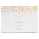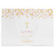 Dieser festliche und moderne Entwurf ist für die erste heilige Kommunion Ihr Kindes perfekt. Der Hintergrund besteht aus einem weißen Hintergrund, der mit Rosa und Goldrundem Confetti und einem verzierten Goldkreuz betont wird. Diese Sammlung ist einfach schön. Karo heraus die zusammenpassenden Zusätze, die Geschenke, die Gastgeschenke und das Briefpapier.