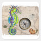 Kompass für grünes Seepferd Quadratischer Aufkleber