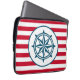 Schönes Design mit Kompassdekoration auf rot-weiß gestreiftem Hintergrund