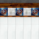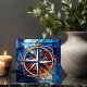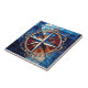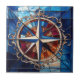 Die Compass-Rose mit Scroll Border Stainglas Look Tile zeigt das Compass Rose Design in Blues und Silber auf einem Hintergrund von Blues, Bernstein und Rot mit einem eleganten Scrollrand in antiken Silber. Diese Kachel hat einen Buntglaslook. Es gibt viele wunderbare Anwendungen für diese schönen Fliesen. Erhältlich in 2 Größen 4,25" x 4,25 " und 6" x 6".