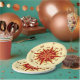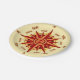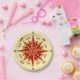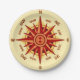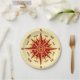 Ein einfaches grafisches Bild einer Vintagen Kompass-Rose, die alle 16 Punkte des Kompasses in Rottönen mit brauner Schrift auf goldfarbenem und cremefarbenem Hintergrund zeigt.