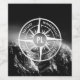 Kompassstar mit Schwarz-Weiß-Foto von dramatischen schneebedeckten Bergen mit milden Wolken. Mit Emblemen wandert Lust, Natur, Reisen und Erforschen, die anpassbar sind, sodass Sie Ihre eigenen Texte schreiben können. In der Mitte des Sterns ist ein personalisiertes Monogramm. Ideal für Naturliebhaber und Reisende.