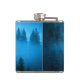 Kompass-Sternemblem Monogramm Nebel in Fichtenwald Flachmann