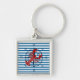 Kompass und Hummer Blau und Weiß Streifen Schlüsselanhänger