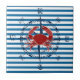 Hell blaue und weiße horizontale Muster Design Keramik Fliesen mit einem nautischen Ozean Thema verfügt über ein Schiff Kompass und eine rote Krabbe!