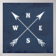 Kompassbild mit Pfeilen und Nord, Ost, Süd, West-Dekoration auf blauem Grunge Hintergrund