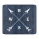 Kompassbild mit Pfeilen und Nord, Ost, Süd, West-Dekoration auf blauem Grunge Hintergrund