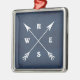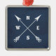 Kompassbild mit Pfeilen und Nord, Ost, Süd, West-Dekoration auf blauem Grunge Hintergrund