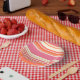 Komplexe Streifen - Rosa, Orange und Creme Pappteller
