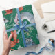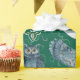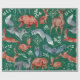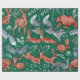 Illustrierte Waldtiere in Rot und Blau, darunter Füchse, Bären, Eulen und Hirsche, sind mit komplizierten Mustern auf schwarzem Hintergrund verziert.