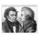 A composers calendar inspired by a US monument. Mt. Rushmore in the United States of America introduces four presidents and in the same style composers on many wood engravings are combined to impressing collages. First of all the whole piece of art is in black and white. All motives come in one style, that is to say they are created from 12 wood engravings to willful collages. so, many composers do not only show up on one monthly calendar page, but some in combinations “with their colleagues” multiple times. There are 12 different combinations and arrangements. It’s a composers calendar which excites not every music fan. However it’s a composers calendar “really out of the box”. You will meet the following classical composers: Schubert, Mozart, Handel, Mendelssohn Bartholdy, Brahms, Bach, Weber, Schumann, Liszt, Haydn, Wagner und Strauss.