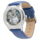 Kinderuhr aus Edelstahl mit blauem Lederarmband