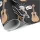 Ein Roboter mit spitzen Haaren und einem verwirrten Ausdruck sitzt auf einem Hocker und überlegt, wo sich das Plugin auf einer akustischen Gitarre verbindet. Die Denkblase über ihrem Kopf enthält einen Gitarrenplug und Fragezeichen, die Kontemplation und Verwirrung anzeigen.