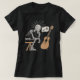 Ein Roboter mit spitzen Haaren und einem verwirrten Ausdruck sitzt auf einem Hocker und überlegt, wo sich das Plugin auf einer akustischen Gitarre verbindet. Die Denkblase über ihrem Kopf enthält einen Gitarrenplug und Fragezeichen, die Kontemplation und Verwirrung anzeigen.