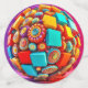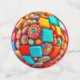 Ein runder Ball, der mit farbenfrohen Formen bedeckt ist, bedeckt dieses Konfetti.