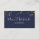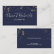 Glitzer aus geplatterten Imitaten (nicht echter Glitzer, nur ein Bild von kleinen Goldfarben/ocheren Farbtupfern) mit ihrem Namen in handgeschriebenem Schriftart, mit Beruf und zusätzlichen Kontaktinformationen auf marineblauer Visitenkarte
