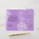 Grafische Blume in Weiß umrissen gegen ein weiches lila machen eine schöne Aussage auf diesem Hochzeitsprogramm Flyer. Ähnliche Blume werden als Wasserzeichen auf der Rückseite wiederholt. Ein sentimentales Aussehen für einen besonderen Tag. Erhältlich in alternativen Farben mit passenden Produkten.