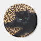 Schwarze Katze regiert die Welt von seinem leoparden Teppich.