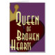 Bild: Grosses, kühn tiefrotes gebrochenes Herz mit Goldkrone. Text: Art-Deco-Schriftart Königin der gebrochenen Herzen