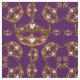 Dieses königliche lila Hintergrundgewebe hat dieses Wiederholung zerstreute Muster der Goldkronen und die Tiaras, die "Königin der Herzen" genannt werden, ist durch Kristie Hubler, die Krone Tiarakunst ist das geschützte Copyright, im Oktober 2001. Es hat Herz geformte Diamanten und Perlen, und ist im Gold u. im Silber verfügbar.