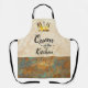 Das ist eine komische Schürze von "Eine Frau einer Art"! Die Goldkrone mit farbenfrohen Juwelen und die Comicworte..."QUEEN OF THE KITCHEN"...auf einem Tan-Hintergrund, umgeben von einer türkisfarbenen und kopferfarbenen Grenze! Original Art Design von Künstler Kerry Miller!