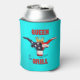 Behalt dein Getränk Cool mit diesem lustigen "One a Kind" Patriotic Can Cooler! Es verfügt über eine längliche Silhouette mit Kuhfahne und die Comicworte..."QUEEN OF THE GRILL"...auf einem türkisfarbenen Hintergrund! Original Art Design von Künstler Kerry Miller!