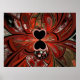 Abstraktes Fraktal Design ähnelt einer wirbelnden Schwarz-, Rot- und Weiß-Kartenflut mit einem Herzenspaar in der Mitte.