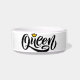 Eine stilvolle Schüssel mit dem Wort "Königin" elegant in schwarz geschrieben, mit einer kleinen goldenen Krone geschmückt.