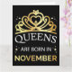 Cooles Design, perfekt für Mädchen und Frauen, die im November geboren sind und entweder eine Skorpio- oder Sagittarius-Königin sind! "Königinnen sind im November Geboren" cooles Zitat mit einer Kronenillustrierung für Geburtstagskinder. Sind Sie eine starke Königin im November geboren? Akzentuieren Sie Ihren Stil mit dieser Geburtstagskunst! Großartiges Geschenk für ein Schützenmädchen, eine Skorpiofrau, geborene Königin Mutter, Tochter, Schwester oder Großmutter im November.