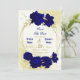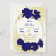 Schöne Save the Date-Karte mit königsblauen Blumen und goldenen Blätter auf einem eleganten goldgeometrischen Rahmen Die Golddetails werden simuliert. WEITERE PRODUKTE finden Sie in der obigen Sammlung oder kontaktieren Sie mich