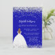 Eine moderne, stilvolle und glamouröse Einladung zu einer Quinceañera, 15. Geburtstagsfeier. Ein königsblauer Hintergrund mit den Imitaten Silver Confetti, einem Mädchen, das ein Kugelgewand trägt. Der Name ist mit einem modernen handgeschriebenen Stilskript geschrieben. Personalisieren Sie Ihre Party-Daten und fügen Sie sie hinzu.