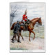 Im späten 19. Jahrhundert lithographische Darstellung eines Dorfbewohners, der einer Angehörigen der 1. Königlichen Drachen des englischen Militärs während der Zeit des Englischen Reiches Anweisungen gibt.