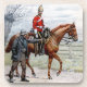Im späten 19. Jahrhundert lithographische Darstellung eines Dorfbewohners, der einer Angehörigen der 1. Königlichen Drachen des englischen Militärs während der Zeit des Englischen Reiches Anweisungen gibt.