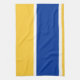 Dieses Tuch schaut in einer Küche mit einem Königsblau- und Gelbgolddekor groß.
