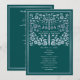 Elegantes und modernes Hochzeitsdesign, inspiriert vom mittelalterlichen Fantasy-Genre, mit einem graduell silbernen Schwert, umrahmt von Blumen auf einem tealfarbenen Hintergrund. Passende Artikel in unserem Shop für ein komplettes Party-Thema. BITTE BEACHTEN SIE: Das Silber in dem Design IST KEINE ECHTE FOLIE und wird in flachen Farben gedruckt.