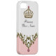 Königliches Monogramm iPhone 5 Hüllen mit dem rosa bling Edelstein druckte auf dem Fall, einer Königinmonarchiekrone und Monogramraum, um Ihren Namen zu addieren. Entworfen für Frauen oder Mädchen und schützt Ihr Telefon auf eine stilvolle Art. Farben umfassen Rosa, Gold und Weiß.