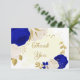 Romantische königsblaue und weiße Blume mit goldenen Blätter botanische Hochzeit danke Ihnen Karte. Die Einzelheiten des Glitzer werden simuliert.