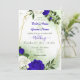 Romantische königsblaue und weiße Blume mit einigen grünen Blätter auf goldgeometrischer Rahmen Hochzeitseinladung Die Glitzer Details werden simuliert