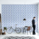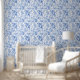 Königsblaue französische Toile-Rosen Blumen Tapete