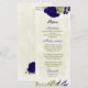 königsblaue und beige Blume botanische Hochzeit Menükarte