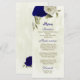 königsblaue und beige Blume botanische Hochzeit Menükarte