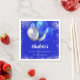 Ein königsblauer Hintergrund mit blauen und silberfarbenen Imitaten und Imitaten Glitzern. Personalisieren und fügen Sie einen Namen und Alter. Weiße Buchstaben.